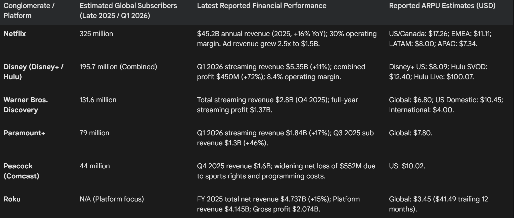 The underlying trend across all these financials is the maximization of ARPU. ARPU figures reflect a complex blend of high-paying domestic subscribers and lower-paying international users, but the consensus across all boardrooms is that ARPU must rise exponentially to justify the tens of billions spent annually in the content arms race.